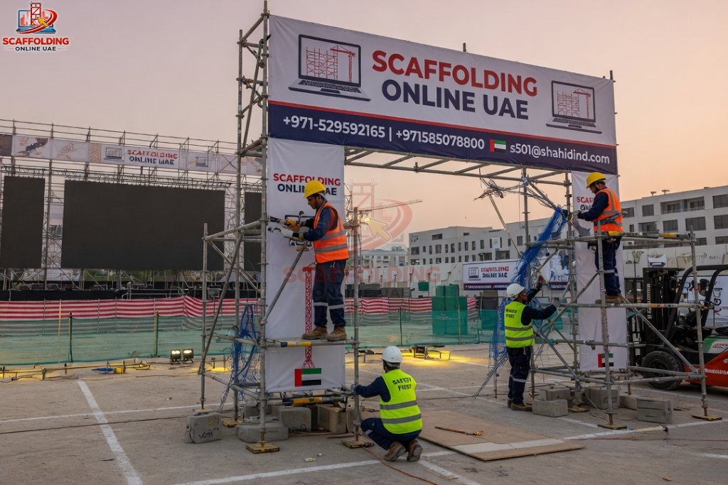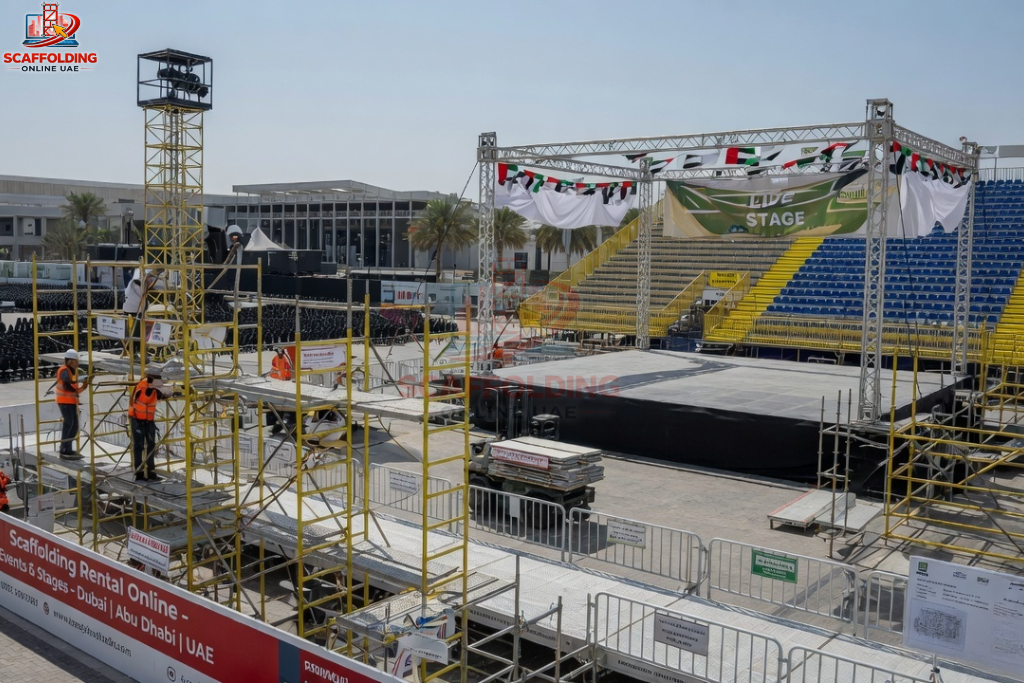 Events move fast, and safety is critical. Stages must remain stable, while audiences need clear visibility and smooth movement. At Scaffolding Rental Online, we provide professional scaffolding for events and stages in UAE, covering Dubai, Abu Dhabi, and all Emirates. Our team builds grandstands, camera towers, platforms, arches, and temporary structures designed for live event environments.