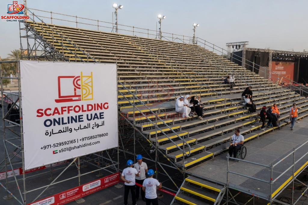 Every venue has different requirements. Stadiums, waterfronts, and urban locations all demand tailored scaffolding solutions. Therefore, we select systems based on site layout, schedule, and load conditions. Our event scaffolding in UAE combines strength, flexibility, and fast execution.