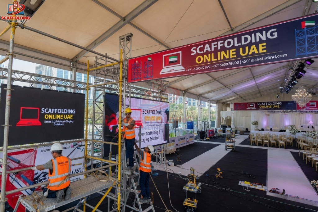 Audience safety is always the top priority. We follow UAE regulations along with recognised international standards for event structures. In addition, our supervisors conduct daily inspections and maintain updated safety tagging. For quick information, you can visit our Scaffolding FAQ page. For broader guidance, refer to event safety best practices such as Event Safety Alliance standards.